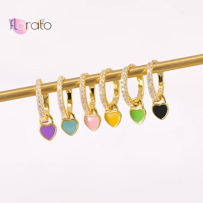 Name: Pendientes con argolla de corazón para mujer, de Plata de Ley 925, aretes coreanos de corazón esmaltado, accesorios de fiesta para niña