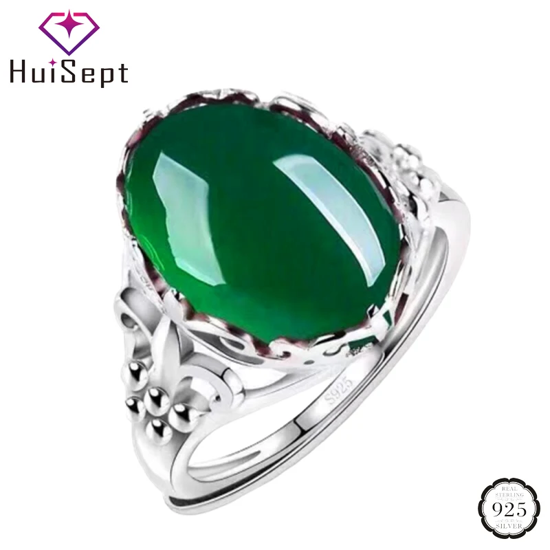 Name: HuiSept Vintage joyas de plata 925 anillos abiertos con Forma ovalada Esmeralda anillo de piedras preciosas para mujer Regalos de fiesta de boda venta al por mayor