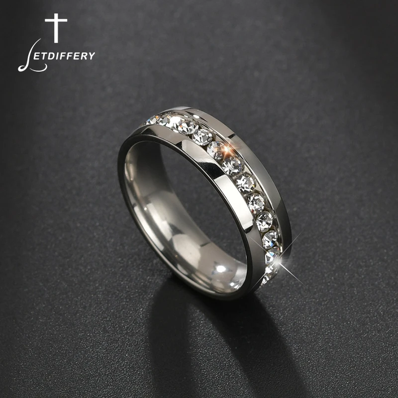 Name: Letdiffery-anillos de boda de circonia cúbica transparente para mujer, acero inoxidable, accesorios para joyería, exquisitos