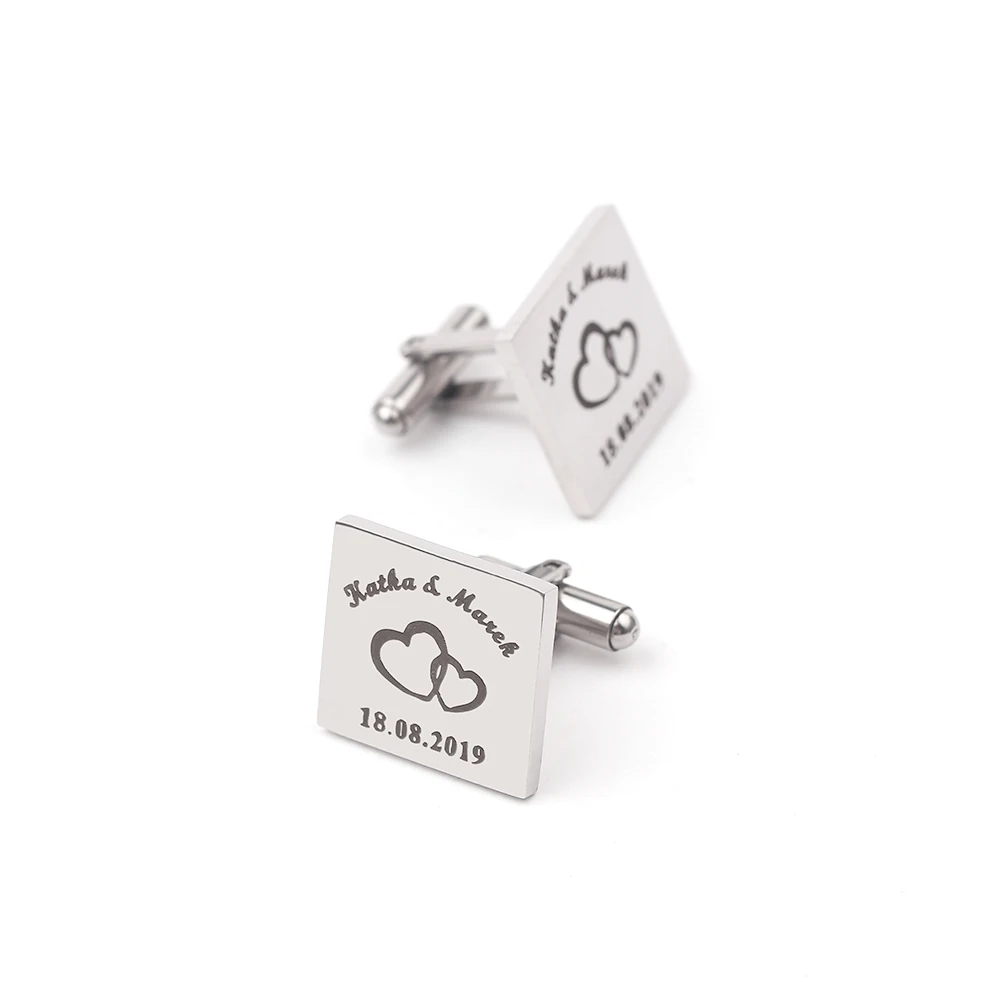 Name: Gemelos de corazón de plata personalizados, aniversario, regalo de boda, logotipo grabado con láser, de acero inoxidable, joyería